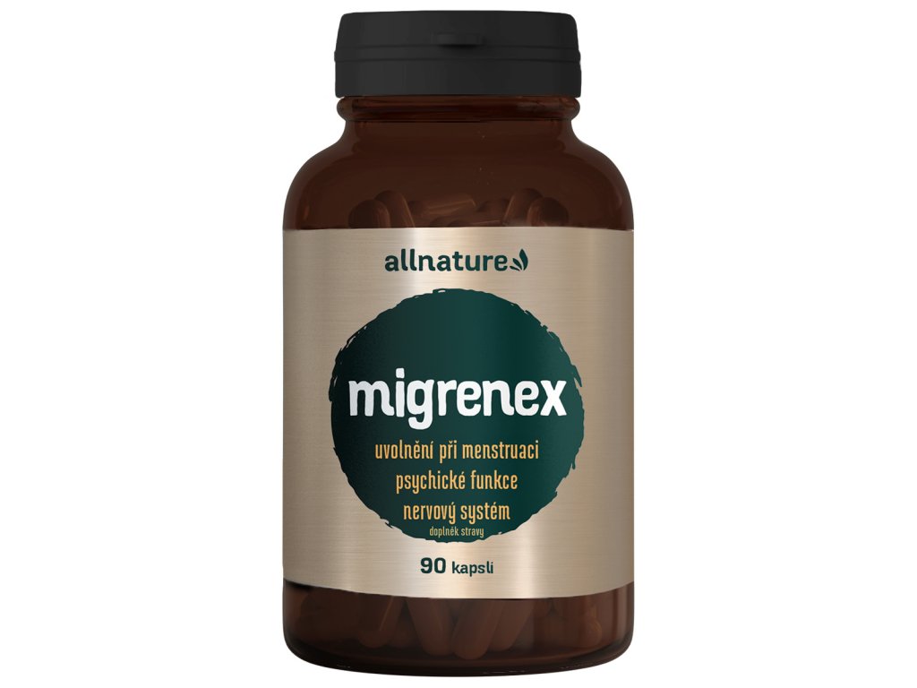 Allnature Migrenex díky kombinaci přírodních složek působí příznivě na celkovou funkci oběhové a nervové soustavy. Doplněk stravy Migrenex je důležitou součástí každého člověka, kterého sužují časté migrény. Navíc se v produktu nachází vitamíny B2. Vitamín B2 (riboflavin) přispívá k ochraně buněk před oxidačním stresem a napomáhá normální činnosti nervové soustavy.