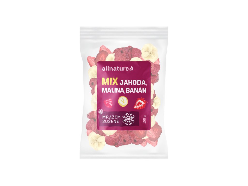 Allnature Mix lyofilizovaného ovoce - jahoda, malina, banán, 100 g