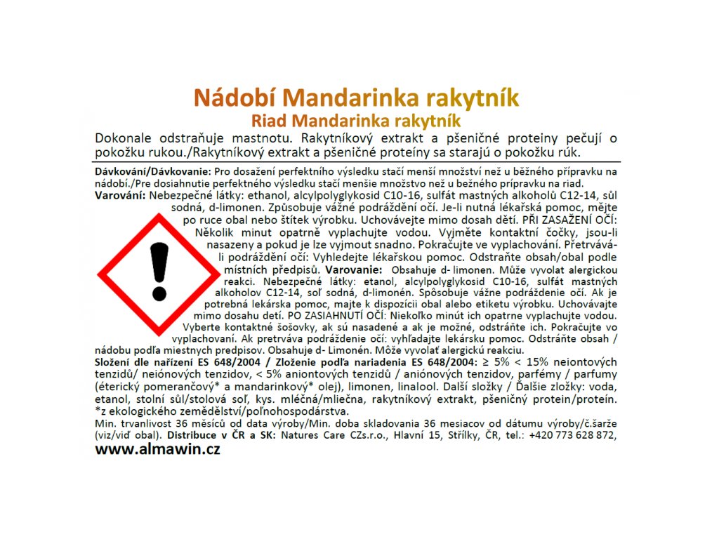 Složení produktů AlmaWin je čistě přírodní a na rostlinné bázi, tedy bez ropných surovin, fosfátů, optických bělidel a dalších toxických látek. Toto maximálně ekologické složení nic neubírá na účinnosti produktů. Zkrátka s produkty AlmaWin je uklízení nejen efektivní, ale také šetrné k přírodě i k vašemu zdraví.