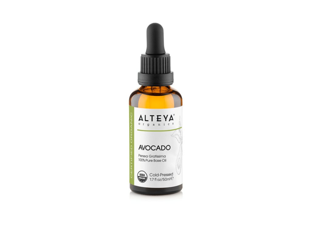 Organický avokádový olej se získává z dužiny plodu avokáda, lisováním za studena. Je nazýván „olejem krásy“, má jemnou vůni a sytě zelenou barvu, kterou mu dodávají vysoké hladiny chlorofylu a karotenoidů. Tento olej patří mezi 10 nejzdravějších olejů na světě a je bohatý na vitamíny, minerály a omega mastné kyseliny, které pozitivně ovlivňují zdraví pokožky, vlasů a nehtů a oddalují známky předčasného stárnutí. Olej se pomalu vstřebává, ale proniká až do nejhlubších vrstev pleti. Pomáhá zlepšovat kvalitu vlasů, zklidňuje podrážděnou pokožku hlavy a regeneruje lámavé a poškozené vlasy. Doporučuje se také ke zmírnění svědění nebo ke změkčení ztvrdlých míst na patách, loktech a dlaních. Díky svým blahodárným účinkům na tělo, pleť, vlasy a nehty se často objevuje v mnoha kosmetických přípravcích. Je považován za přirozený ochranný UV faktor a chrání pleť před ztrátami hydratace.