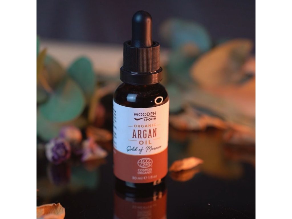 Organický arganový olej, lisovaný za studena, se oprávněně nazývá „tekuté zlato Maroka“. Je bohatý na přírodní antioxidanty, polyfenoly, vitamíny E a F, které napomáhají regeneraci pokožky, zklidňuje záněty a bojuje proti volným radikálům. Je obzvláště vhodný pro suchou pleť či ruce, jako prevence proti tvorbě vrásek, ale také pro obnovení zdravého vzhledu vlasů.