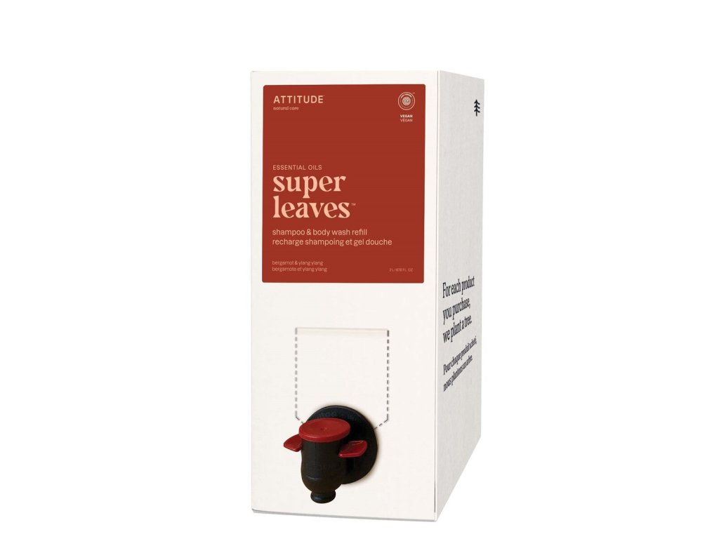 ATTITUDE Super leaves Essentials Přírodní šampon a sprchový gel 2v1 Bergamot &YlangYlang, náhradní náplň 2l