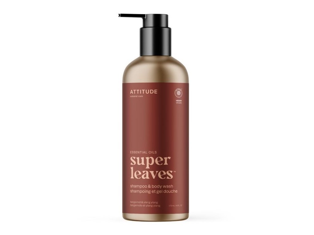 ATTITUDE Super leaves Essentials Přírodní šampon a sprchový gel 2v1 Bergamot & YlangYlang, 473ml