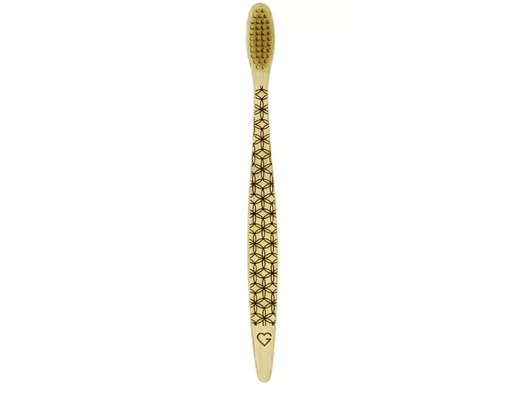 Čištění zubů je součást každodenního života a proto stojí za to se nad tím trochu zamyslet. Možná vás už napadlo, že i plastový zubní kartáček by se dal vyměnit za ekologičtější variantu. Právě takovou vám nabízíme v podobě zubního kartáčku ručně vyrobeného z bambusového dřeva, které nezatěžuje životní prostředí, ani naši karmu. Výsledkem používání kartáčku jsou krásně čisté a zdravé zuby a dásně díky extra jemným štětinkám z biologicky odbouratelných přírodních vláken z bambusové buničiny bez stop ftalátů a BPA, které se dostanou do všech míst. Využijte potenciál přírody a vyměňte plastové kartáčky za krásný ekologický zubní kartáček. Balení kartáčku je vyrobeno z recyklovaného papíru.