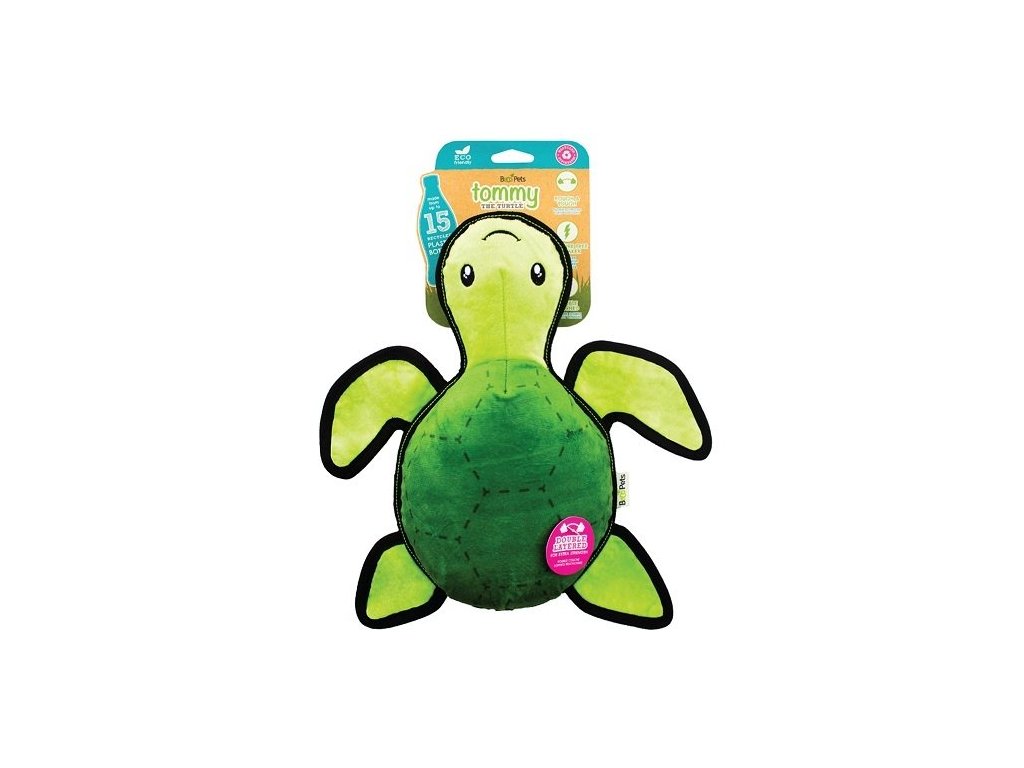 Hračka pro psa Beco Rough and Tough - Želva Tommy je vyrobena z recyklovaných plastových lahví a má interaktivní squeeker - pískátko, které je recyklovatelné. Tommy je dvojitě prošitý a dvouvrstvý, s extra hrubou černou podšívkou, díky čemuž je pevný a odolný. Jestli má Váš pes rád zápasení nebo mazlení, tato hračka ho určitě potěší.