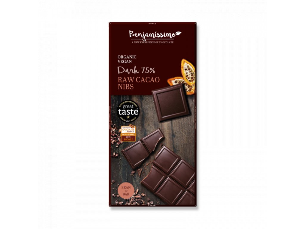 Benjamissimo Hořká čokoláda 75% s RAW kousky kakaa, 70g