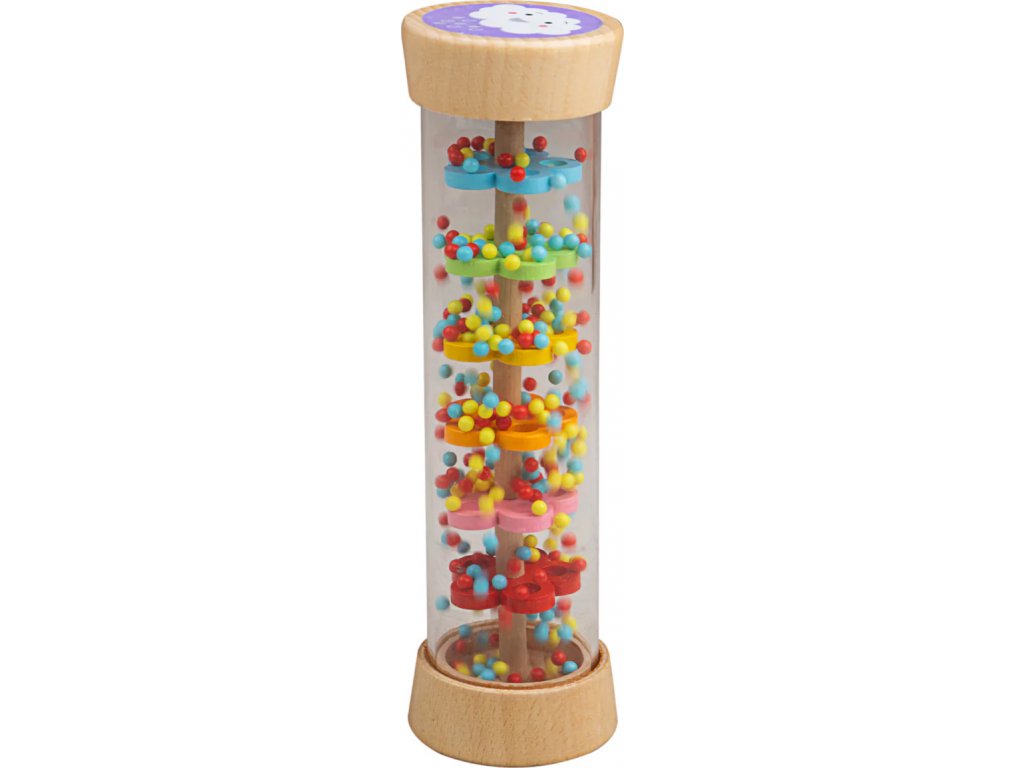 Roztomilá dřevěná hračka, která vydává zvuky deště. Při otáčení válcovité hračky se začnou pohybovat barevné perličky uvnitř, vytvoří zajímavý vizuální i zvukový efekt. Na obou stranách najdete dřevěné zátky s krásnou ilustrací slunce a mraku. Vyrobeno z kvalitních materiálů ze zodpovědných zdrojů. Splňuje evropské bezpečnostní standardy. Hlavní vlastnosti: poutavý zvukový a vizuální efektodolné provedení