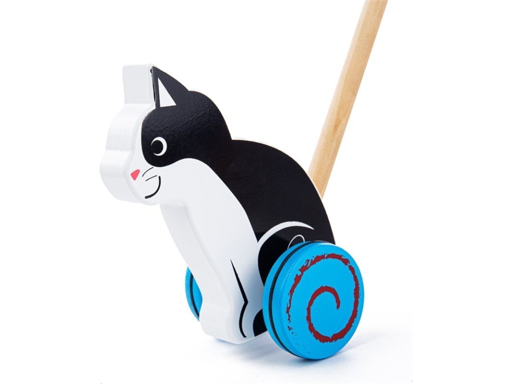 Rovnováha a pohyb jsou dovednosti, které dětem tento jezdík pomůže rozvinout. Držadlo je zakončeno kuličkou, lze jej tedy jednoduše uchopit. Děti mohou kočičku strkat nebo tahat doma i venku. Tato hračka podporuje děti v chůzi a porozumění příčině a následku. Vyrobeno z kvalitních materiálů ze zodpovědných zdrojů. Splňuje evropské bezpečnostní standardy. Hlavní vlastnosti: podporuje pohybovou aktivitu rozvíjí rovnováhu zábavnou formoupogumovaná kolečka pro tichý chod na pevných podlahách