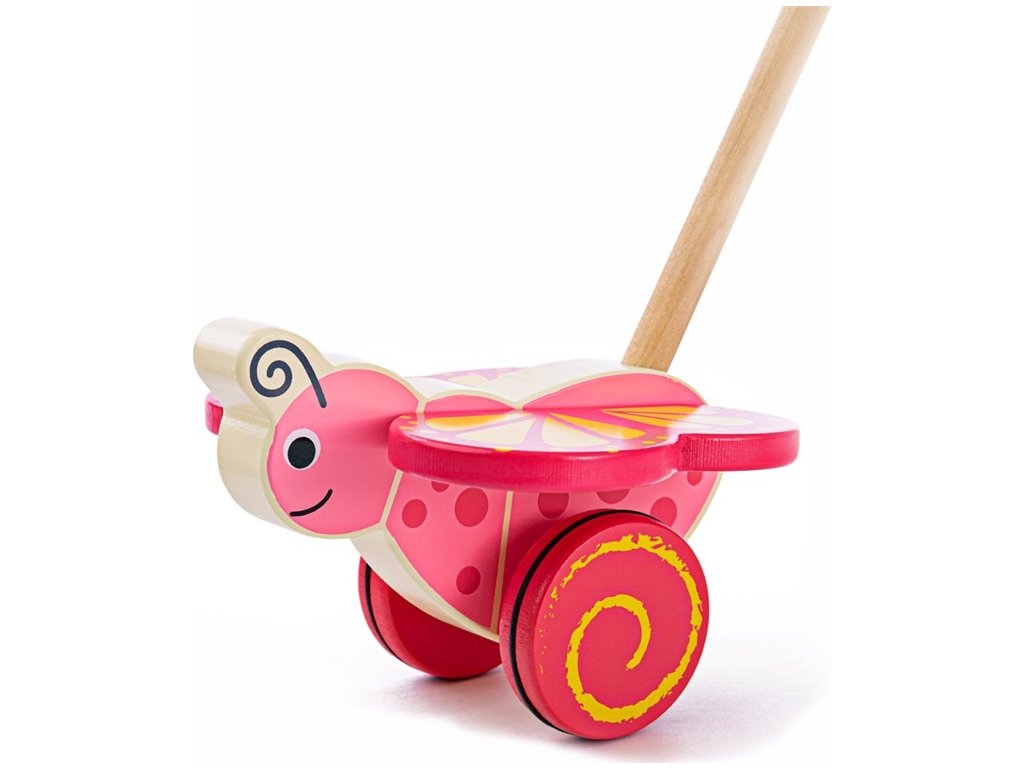 Rovnováha a pohyb jsou dovednosti, které dětem tento jezdík pomůže rozvinout. Držadlo je zakončeno kuličkou, lze jej tedy jednoduše uchopit. Děti mohou motýlka strkat nebo tahat doma i venku. Tato hračka podporuje děti v chůzi a porozumění příčině a následku. Vyrobeno z kvalitních materiálů ze zodpovědných zdrojů. Splňuje evropské bezpečnostní standardy. Hlavní vlastnosti: podporuje pohybovou aktivitu rozvíjí rovnováhu zábavnou formoupogumovaná kolečka pro tichý chod na pevných podlahách