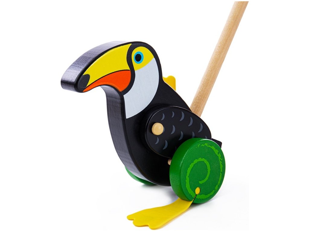 Rovnováha a pohyb jsou dovednosti, které dětem tento jezdík pomůže rozvinout. Držadlo je zakončeno kuličkou, lze jej tedy jednoduše uchopit. Děti mohou tukana strkat nebo tahat doma i venku. Tato hračka podporuje děti v chůzi a porozumění příčině a následku. Vyrobeno z kvalitních materiálů ze zodpovědných zdrojů. Splňuje evropské bezpečnostní standardy. Hlavní vlastnosti: podporuje pohybovou aktivitu rozvíjí rovnováhu zábavnou formoukolečka vydávají veselý klapavý zvuk při otáčení