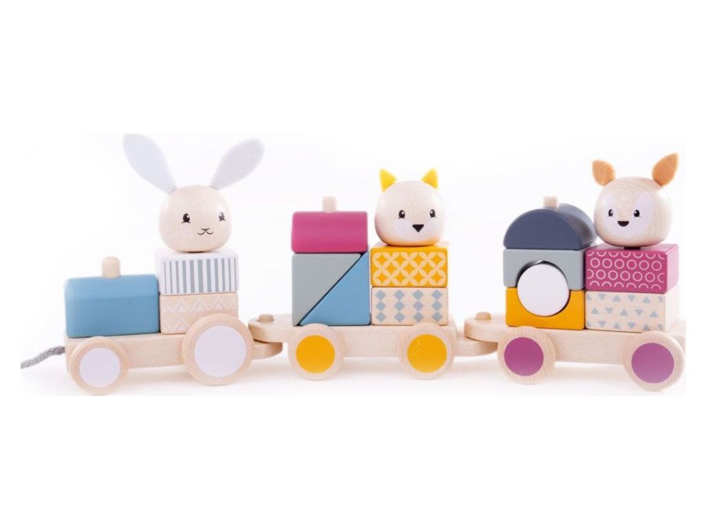 Všichni si nastupte do tohoto krásného tahacího vláčku! Je vyroben ze 100% FSC dřeva, je nádherně pestrobarevný a děti zabaví na dlouhé hodiny. V balení najdete mašinku a dva vagónky, také tři zvířecí pasažéry! Vláček mohou děti tahat bez problému po měkkém i tvrdém povrchu.Hračka je velmi univerzální, je nejen tahací, ale funguje také jako nasazovačka a puzzle. Kostičky můžete poskládat několika různými způsoby, to pomáhá s rozvojem zručnosti a dovednosti počítání.Hladké 100% FSC dřevo z eticky spravovaných lesů tvoří tento vláček, který je velký tak akorát pro dětské ruce. Kvalitní dřevo zaručuje, že vám hračka vydrží po mnoho let. Hlavní vlastnosti: 1 mašinka, 2 vagónky, 3 pasažéři16 dílkůkvalitní FSC certifikované materiálynetoxické barvy Značka a certifikát FSC® (Forest Stewardship Council) zaručuje, že dřevo, ze kterého byl produkt vyroben, nebylo vytěženo nelegálně a pochází z lesů obhospodařovaných šetrným či přírodě blízkým způsobem, ve kterém jsou dodržovány přísné environmentální a sociální požadavky. Značka FSC® na výrobku znamená, že svým nákupem pomáháte chránit lesy a podporujete šetrné, odpovědné či přírodě blízké hospodaření, díky kterému jsou naše lesy stabilnější, zdravější, mají přirozenou druhovou skladbu a lépe odolávají negativním následkům klimatických změn.