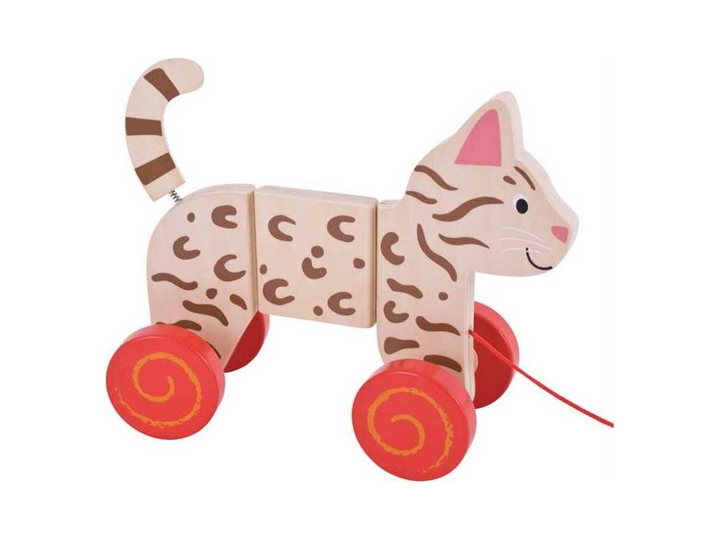 Táhněte tuto krásnou kočičku! Hračka podporuje obratnost a sebevědomí vašeho dítka. Dřevěná kočička je vybaven barevnými kolečky a má pohyblivé klouby pro spoustu ohebných a kroutivých momentů. Hlavní vlastnosti: podporuje obratnostvyrobeno z vysoce kvalitních materiálů ze zodpovědných zdrojůvyhovuje současným evropským bezpečnostním normám