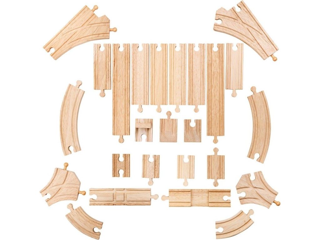 Výhodný poměr skvělé ceny a kvality/množství kolejí dělají z tohoto setu naše nejprodávanější dřevěné koleje. Set obsahuje 25 kusů kvalitních dřevěných dílů kolejí, který lze přidat k jakékoliv existující kolekci vláčkodráh. Hlavní vlastnosti: vláčkodráhy a jejich příslušenství značky Bigjigs Rail je možno kombinovat se všemi dalšími dřevěnými vláčkodráhami na trhuvyrobeno z kvalitních a zodpovědně získaných přírodních materiálůodpovídá současným evropským bezpečnostním normámpodporuje představivost, obratnost a koordinaci