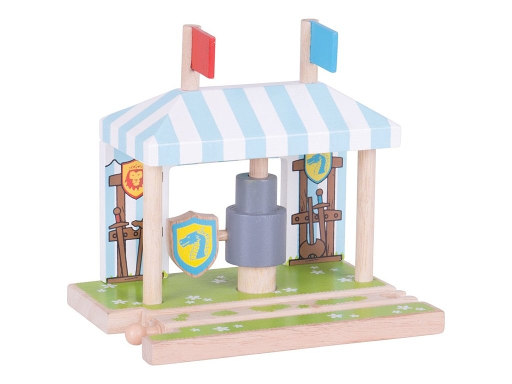 Zásáhněte draka a vítězně projeďte rytířským cvičištěm svým královským vláčkem Bigjigs Rail. Vláček není součástí balení. Hlavní vlastnosti: Vláčkodráhy a jejich příslušenství značky Bigjigs Rail je možno kombinovat se všemi dalšími dřevěnými vláčkodráhami na trhu.Vyrobeno z kvalitních a zodpovědně získaných přírodních materiálů.Odpovídá současným evropským bezpečnostním normám.Podporuje představivost, obratnost a koordinaci.