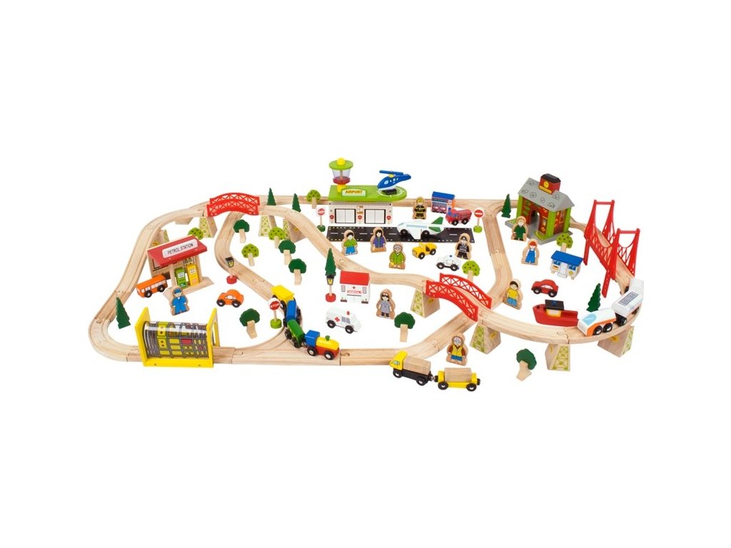 Poškozený obal. Nové zboží bez závad. Součástí balení je vše dle obrázku. Jak chcete cestovat právě dnes? Tato sada poskytuje spoustu možností: Na nádraží můžete nastoupit buď do rychlovlaku nebo do místního vláčku. Nebo můžete jet autem na letiště a sledovat přistávací letadla a vrtulníky. Nezapomeňte však před odjezdem natankovat na čerpací stanici. Součástí jsou pestrobarevné domy, budovy, lidé, tunel, stromy a auta. Hlavní vlastnosti: ·Vláčkodráhy a jejich příslušenství značky Bigjigs Rail je možno kombinovat se všemi dalšími dřevěnými vláčkodráhami na trhu.·Vyrobeno z kvalitních a zodpovědně získaných přírodních materiálů.·Odpovídá současným evropským bezpečnostním normám.·Podporuje představivost, obratnost a koordinaci.