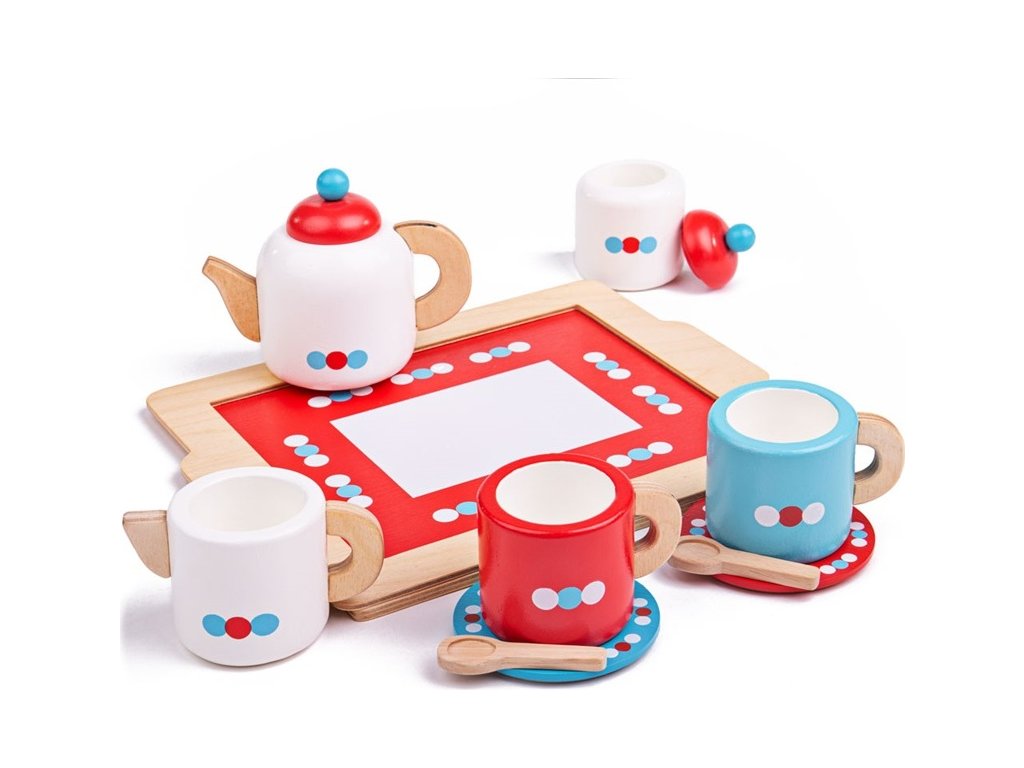 Čaj pro dva? Naši nejmenší si mohou vyzkoušet své hostitelské dovednosti s touto dřevěnou čajovou sadou a podnosem Bigjigs Toys. Tato dřevěná herní sada má vše, co potřebují k uspořádání dokonalého čajového večírku. Obsahuje čajovou konvici s poklicí, 2 dřevěné šálky a podšálky, cukřenku s poklicí, 2 vařečky, konvičku na mléko a tác. Tento rozkošný čajový servis podporuje kreativní a nápadité hraní rolí, rozvíjí sociální dovednosti a zlepšuje obratnost. Vyrobeno z vysoce kvalitních, zodpovědně získaných materiálů. Splňuje aktuální evropské bezpečnostní normy. Hlavní vlastnosti: obsahuje čajovou konvici, šálky, podšálky, cukřenku, vařečky, konvičku na mléku a tácpodporuje kreativitu a nápaditostrozvíjí sociální dovednostizlepšuje obratnost a motoriku