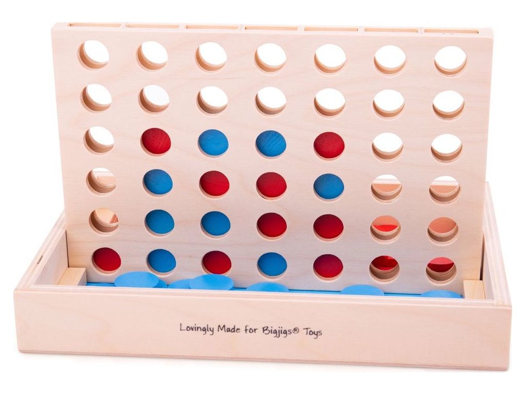 Čtyři v rovině je klasická strategická hra pro dva hráče. Zabaví děti na hodiny, když se snaží porazit svého soupeře. Jak vyhrát čtyři v řadě? Hráč, který jako první umístí 4 žetony horizontálně, vertikálně nebo diagonálně, vyhrává hru. Současně musí hráč v tomto cíli také zabránit soupeři.Čtyři v řadě pomáhají dětem rozvíjet schopnosti logického myšlení a jemnou motoriku , když umísťují své žetony do různých slotů - vertikálně, horizontálně nebo diagonálně. Jednoduchá, ale účinná soutěžní desková hra .Čtyři v řadě je vyrobeno z kvalitních , odpovědně ze zdrojů materiálů. Pulty jsou potaženy netoxickými barvami a laky. Splňuje aktuální evropské bezpečnostní normy. Hlavní vlastnosti: klasická dřevěná desková hraurčeno pro 2 hráčeobsahuje červené a modré žetony