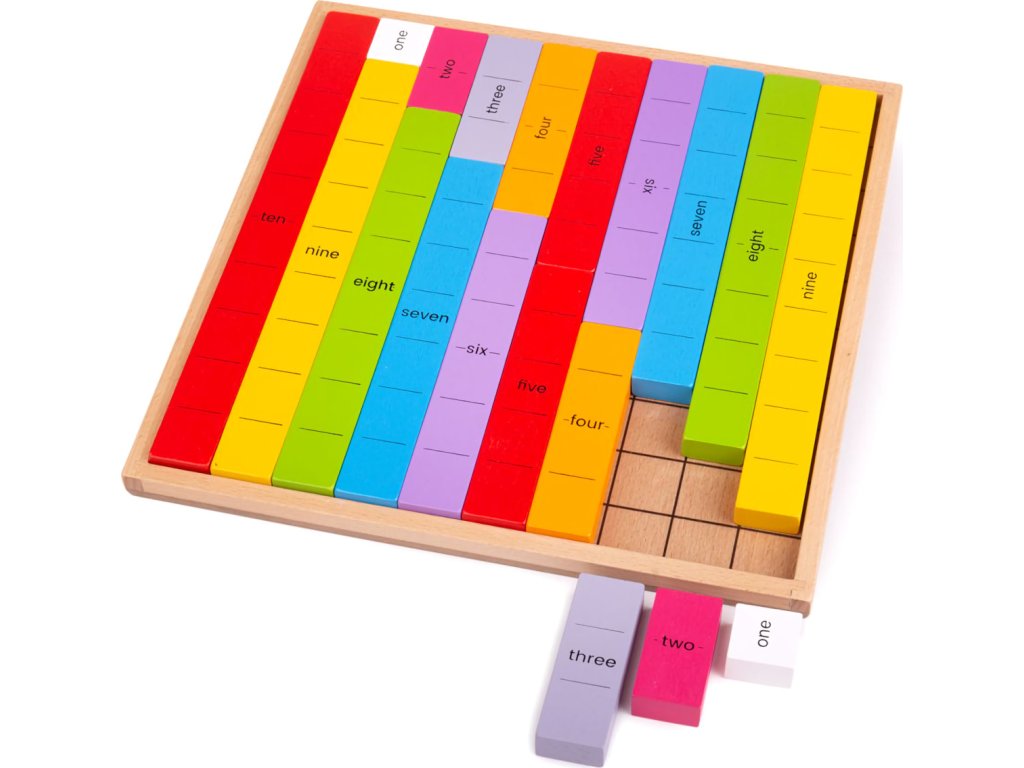 Pomocí jednoduchého puzzle mohou děti přirozeně a samostatně objevovat vztahy mezi čísly a rozvíjet nejen základy sčítání, ale poodhalovat i hlubší vlastnosti desítkové soustavy, či třeba poměry. Čísla a jejich význam si mohou fyzicky osahat, což významně přispívá pochopení jejich podstaty. Pestrými barvami tabulka snadno upoutá dětskou pozornost a může dále přispět k lepšímu soustředění. Všechny součásti jsou vyrobeny z kvalitního, zodpovědně získaného dřeva a lakovány nezávadnými barvami. Hlavní vlastnosti: základna a 19 dílů skládačkypuzzle a didaktická pomůckaatraktivní dřevěné zpracování