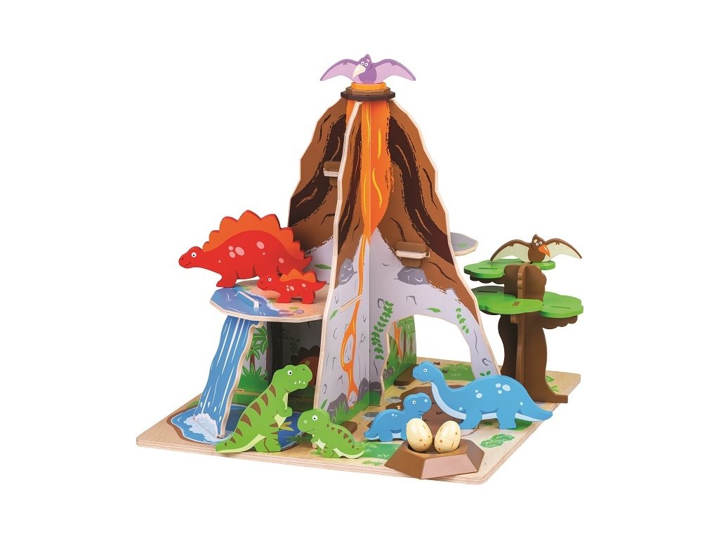 Vraťte se zpět do časů, kdy dinosauři vládli Zemi. Hrací sada Ostrov dinosaurů obsahuje 8 dinosaurů, hnízdo a 2 vejce, vodopád a volně stojící strom. Stromem se dá pohybovat. Z dinosaurů na děti čeká mimo jiné velký Brontosaurus s mládětem a také 2 Pterodaktylové. Schovejte se za vodopádem, vylezte na sopku nebo balancujte na skalní římse, ale pozor na lávu! Tato sada děti naučí něco o dinosaurech a čase, kdy žili. Jednoduše složte dřevěné dílky do sebe a prehistorická krajina je připravena ke hraní. Ostrov dinosaurů pomáhá a rozviíjí zručnost, představivost, sociální dovednosti a koordinaci dětí. Obsahuje 13 hracích dílků. Vyrobeno z kvalitních materiálů z odpovědných zdrojů. Hlavní vlastnosti: 13 hracích dílů 8 dinosaurů (Brontosaurus s mládětem, 2 Pterodaktylové a další)hnízdo2 vejcevodopád strom, kterým se dá pohybovat jednoduché složenírozvíjí zručnost, představivost a učení dětí o dinosaurech a čase, ve kterém žili