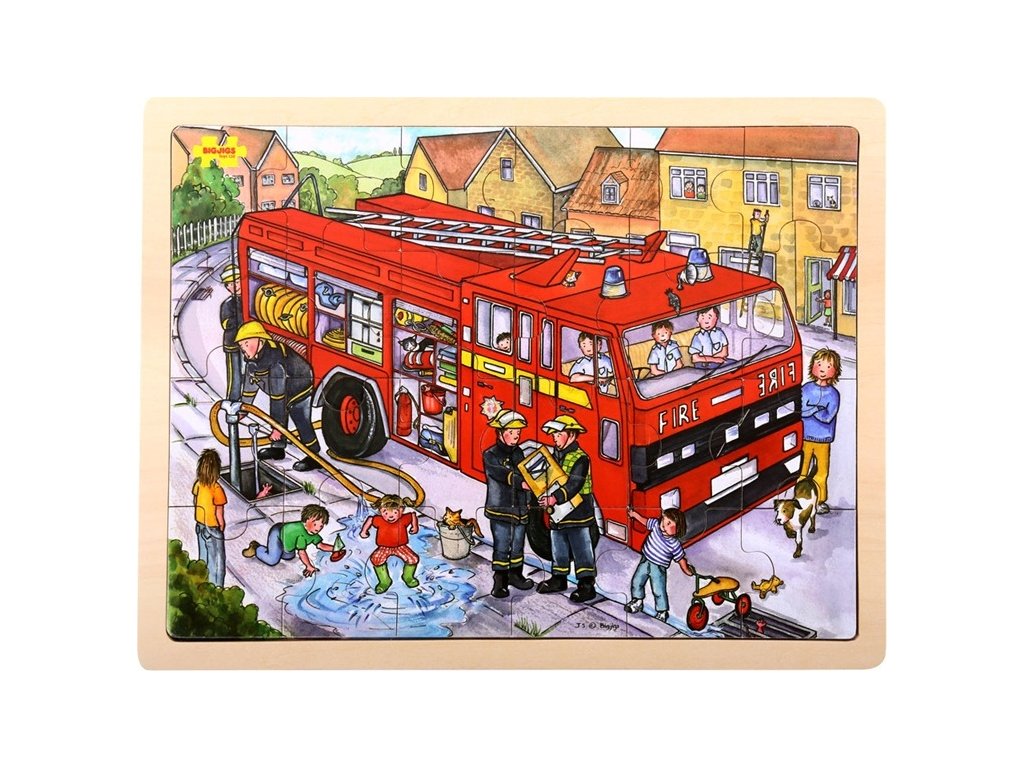Bigjigs Toys Dřevěné puzzle hasiči 24 dílků