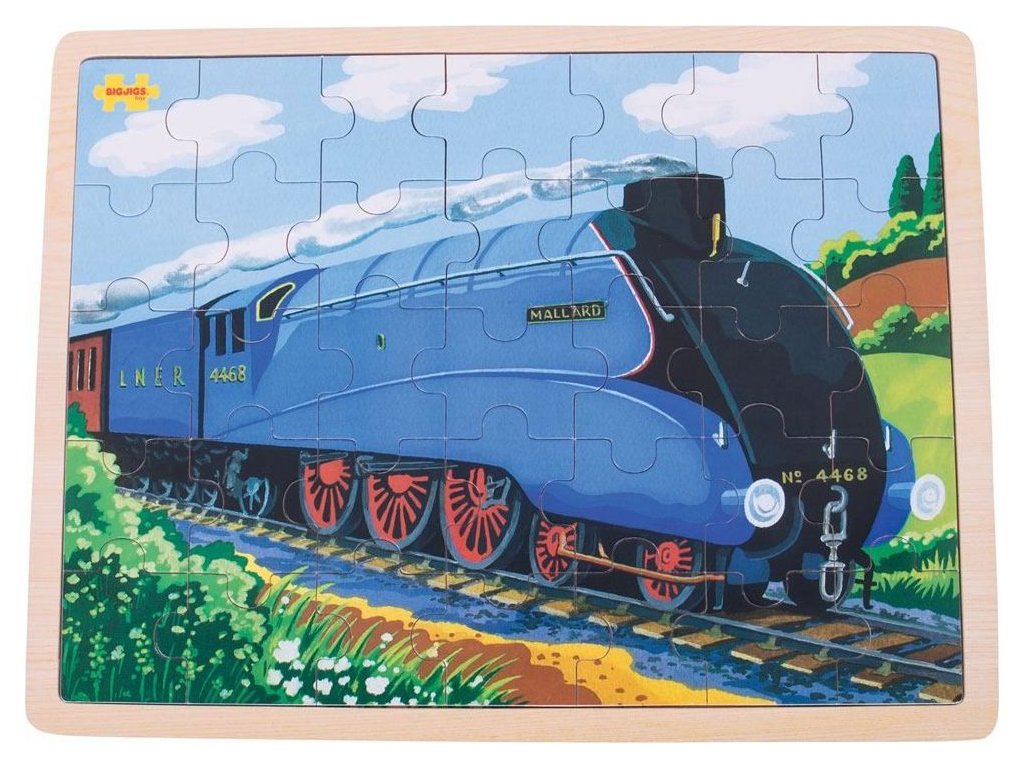 Bigjigs Toys Dřevěné puzzle historický vlak Mallard 35 dílků