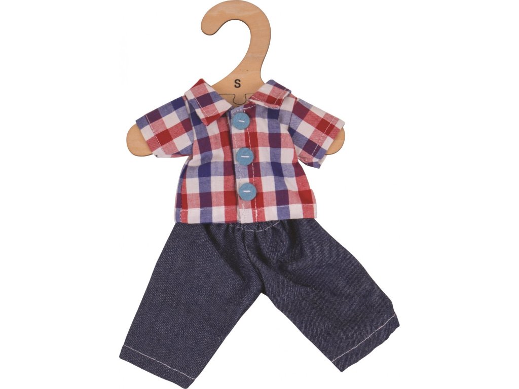 Bigjigs Toys Kostkovaná košile a rifle pro panenku 28 cm