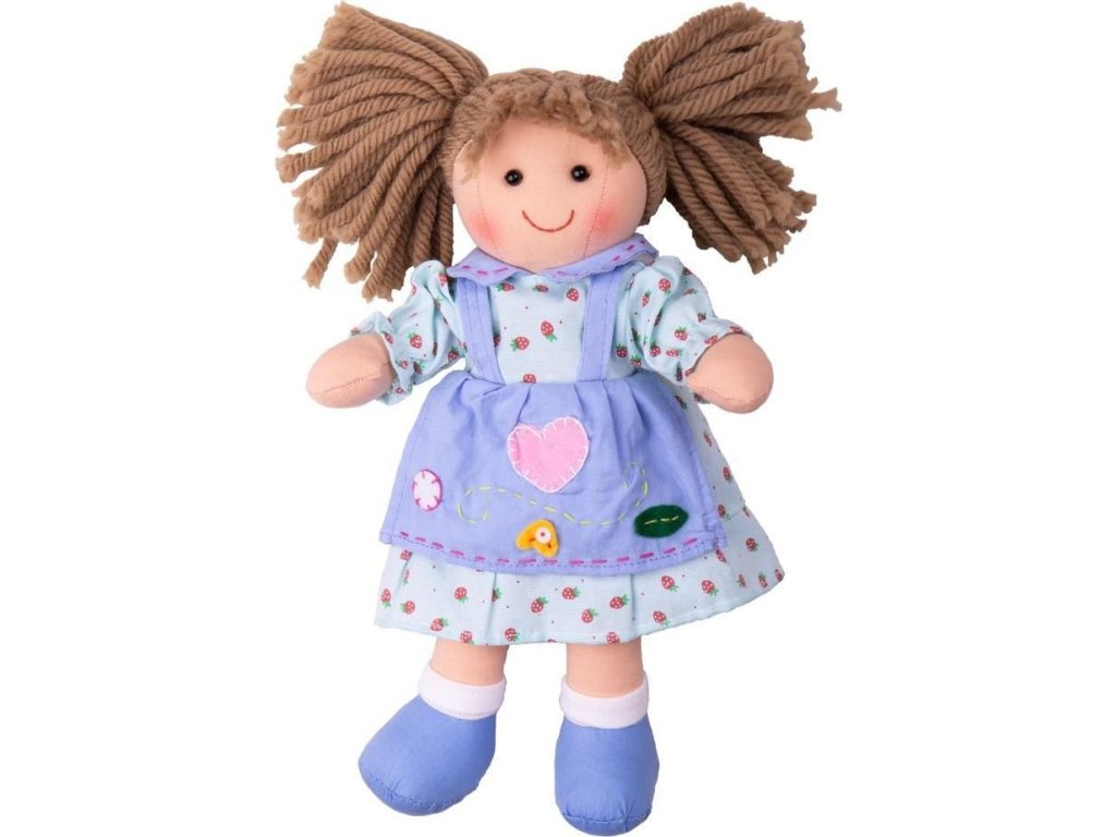 Seznamte se s Grace - veselou, barevnou, látkovou panenkou, s níž si Vaše dítě bude určitě rádo hrát. Panenka je oblečena do kvalitního oblečení v hezkém, bleděmodrém provedení se vzorem červených jahůdek. Měkké látkové panenky jsou skvělým způsobem, jak podpořit kreativní hraní. Hlavní vlastnosti: bezpečné měkké tělíčkohra s panenkou rozvíjí jemnou motoriku a schopnost pomáhat, pečovatk panence Bigjigs Toys lze dokupovat oblečení v příslušné velikostivhodné již od narozeníodpovídá současným evropským bezpečnostním normám