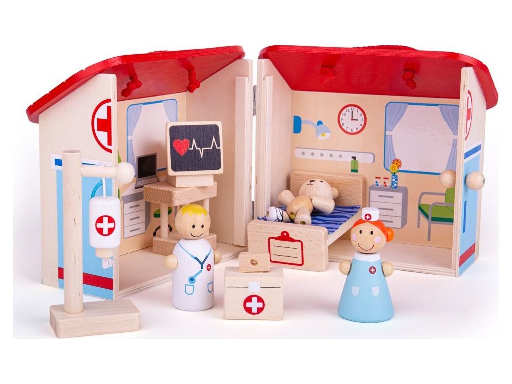 Pan Medvěd se praštil do hlavy! Tato pestrobarevná dřevěná mini nemocniční herní sada má uvnitř i zvenčí funkcemi prvky a je dodávána s nemocničním lůžkem, lékařskou kapačkou, srdečním monitorem, medvědem, sestřičkou a lékařem. Rukojeť a bezpečná spona zajišťují, že tato sada je vždy připravena cestovat s vaším malým dítětem a zároveň jsou všechny herní prvky bezpečně uloženy uvnitř. Vyrobeno z vysoce kvalitních, zodpovědně získaných materiálů. Splňuje aktuální evropské bezpečnostní normy. Obsahuje 9 hracích prvků. Hlavní vlastnosti: kompaktní uzaviratelná mini nemocniceobsahuje 9 hracích prvkůvyrobeno z vysoce kvalitních, zodpovědně získaných materiálůsplňuje aktuální evropské bezpečnostní normy