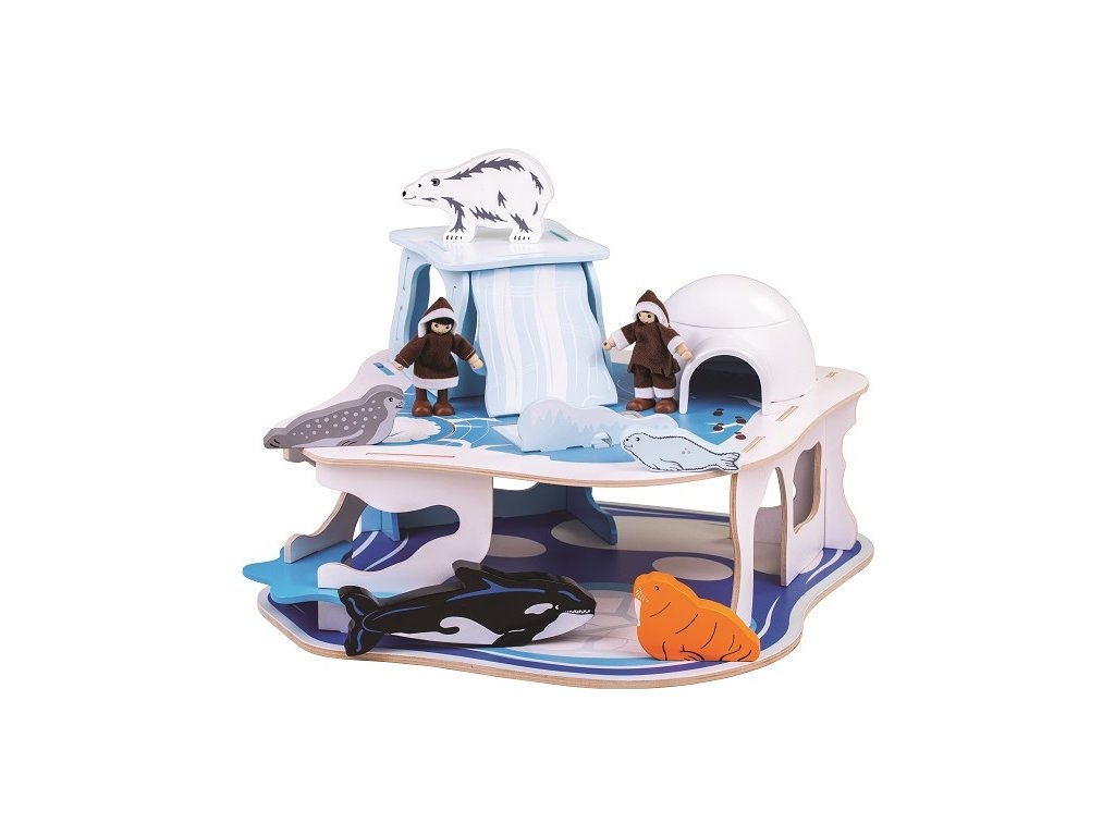 Přiveďte s tímto hracím setem k životu jednu z nejvíce dramatických a fascinujících krajin na Zemi. Tento perfektně detailní dřevěný polární ledovec obsahuje dva eskymáky, šest polárních zvířat, iglů s odnímatelnou střechou a padací dvěře. Eskymáci žijí ve svém iglů a sem tam si uloví nějakou rybu. Pozor na tenký led, jinak můžete propadnout padacími dveřmi! Rozvíjí slovní zásobu, vypravěčské dovednosti a zručnost. Vyrobeno z kvalitních materiálů z odpovědných zdrojů. Hlavní vlastnosti: polární ledovec s dvěmi eskymáky, šesti polárními zvířatyiglů s odnímatelnou střechou a padacími dveřmirozvíjí slovní zásobu, dovednost a zručnost