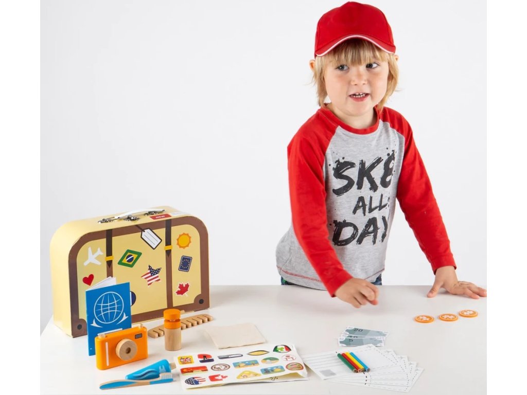 Povrchová vada. Kosmetická vada na kufříku.Připravte se na dovolenou s těmito cestovními nezbytnostmi! Tato úžasná prázdninová sada od Bigjigs Toys obsahuje mléko na opalování, které ochrání pokožku před silnými slunečními paprsky, fotoaparát na pořízení zábavných prázdninových snímků do alba, peníze za zmrzlinu a suvenýry, hřeben, zubní kartáček a zubní pasta. Navíc pohlednice, které můžete poslat přátelům a rodině, pas, samolepky a zábavná mapa k vybarvení pomocí 4 pastelek! Tato herní sada má vše, co vaše ratolest potřebuje na dovolenou, zabalená v praktickém kufříku na hračky. Skvělý způsob, jak podpořit kreativní a nápadité hraní rolí. Vyrobeno z vysoce kvalitních, zodpovědně získaných materiálů. Splňuje aktuální evropské bezpečnostní normy. Hlavní vlastnosti: podporuje kreativní a nápadité hraní rolíbaleno v praktickém kufříku