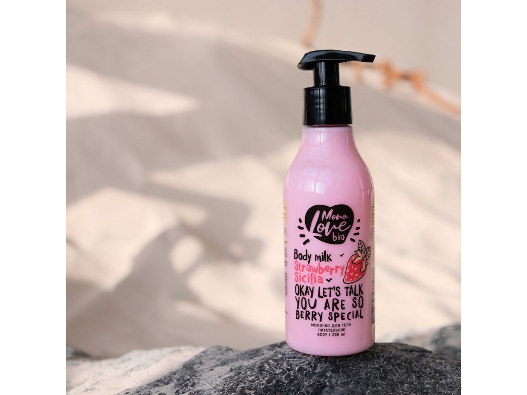 Vyživující tělové mléko s lahodnou vůní jahod. Díky jahodovému extraktu, kokosovému oleji, jojobě, která je součástí složení, má výživný a hydratační účinek. Pokožka je sametovější a jemnější. Bez minerálních olejů, parabenů a silikonů.