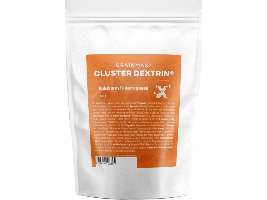Cluster dextrin® je patentovaná forma polysacharidu určeného především pro vytrvalostní sporty. Technologické zpracování zajistí, že se v žaludku nezdrží příliš dlouho a putuje do tenkého střeva, odkud se postupně uvolňuje do krve. To z něj dělá výborného pomocníka při dlouhých a fyzicky náročných trénincích, při kterých potřebujeme energii a sílu po delší dobu. Lze jej použít jak před, při nebo i po tréninku k doplnění zásob glykogenu.