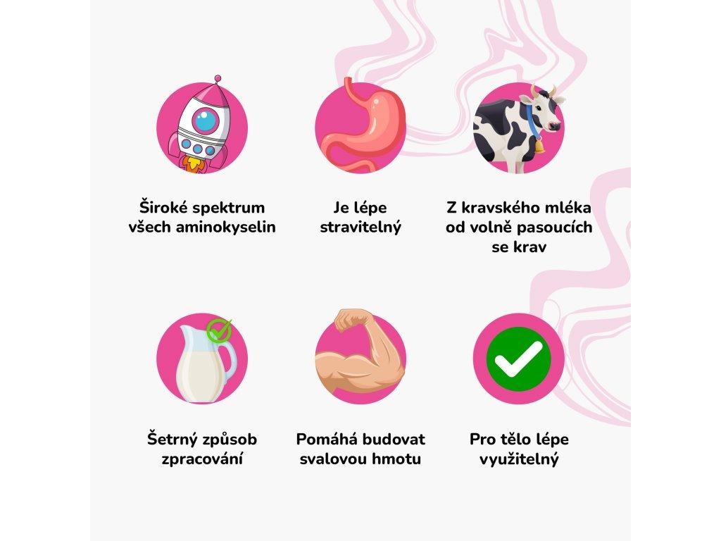 • Aminokyseliny v neporušených vazbách pro lepší využitelnost v těle.