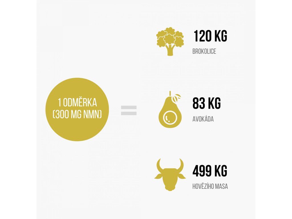 eNeMeN neboli β-nikotinamid mononukleotid je bezpečným vedlejším produktem vitamínu B3 a přirozeně se nachází ve všech formách života včetně našeho těla. eNeMeN se přirozeně vyskytuje tedy i v potravinách jako např. syrové hovězí maso, sýry, ovoce, zelenina (brokolice, zelí, avokádo, rajčata). Ačkoliv se eNeMeN vyskytuje v mnoha potravinách, vědci přišli na to, že byste museli zkonzumovat 100 kg brokolice, 69 kg avokáda nebo 416 kg hovězího masa k tomu abyste ze stravy získali 250 mg eNeMeN. eNeMeN v laboratorní čistotě více než 99%, zároveň také ve stabilní formě a bez jakýchkoliv aditiv a balastních látek. Jedná se o velmi stabilní a čistou formu eNeMeN. Při vyšších teplotách toto eNeMeN degraduje zanedbatelně, jak si můžete v dalším odstavci přečíst v teplotním zátěžovém testu.