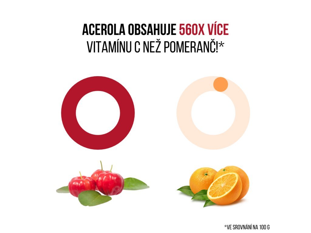 Vitamín C známe jako klíčový nutrient naší imunity. Jde o silný antioxidant, který hraje klíčovou roli v mnoha životně důležitých funkcích, včetně tvorby kolagenu, absorpce železa, udržení imunitního systému, hojení ran a udržení zdravých zubů a dásní. Navzdory jeho zásadnímu významu pro zdraví, tělo si samo vitamín C nevyrábí a neumí si jej ani ukládat, proto je nutné ho pravidelně doplňovat. Třešně Aceroly jsou nejbohatším přírodním zdrojem vitamínu C.
