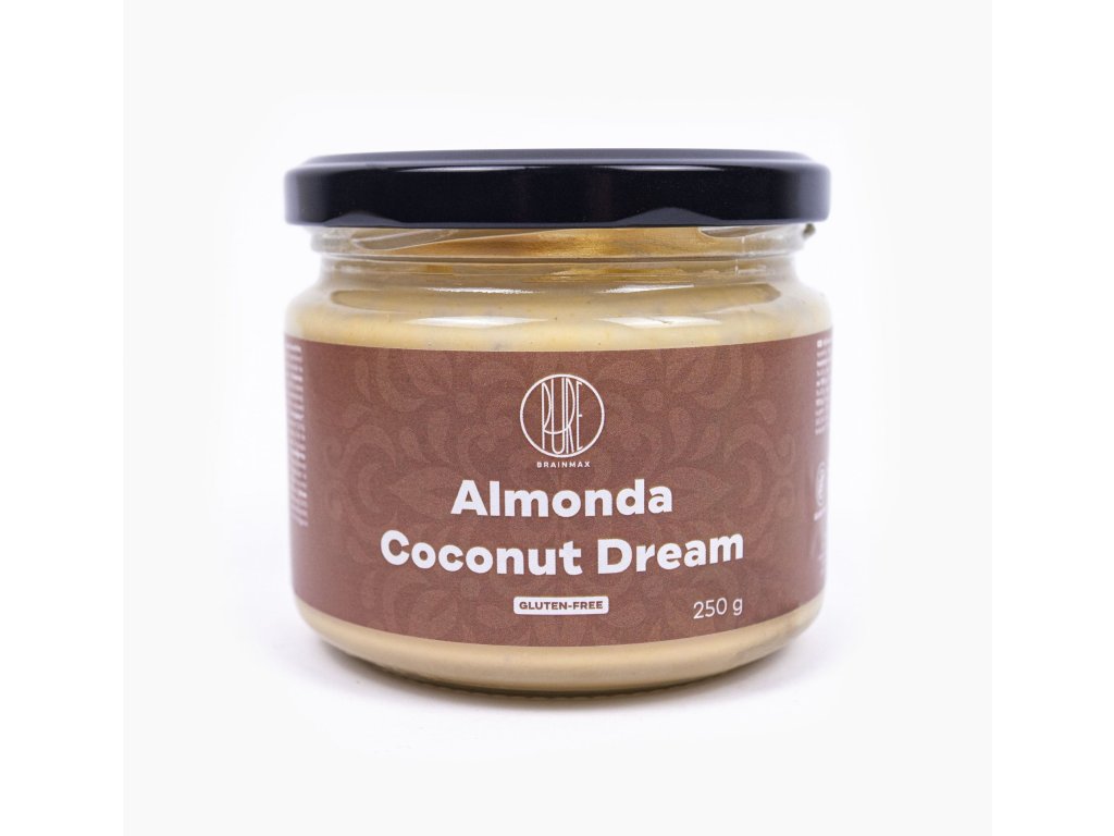 V každé lžičce objevíte neskutečně vyladěnou chuť mandlí, bílé čokolády s exotickým podtónem kokosového sirupu. To je nový krém BrainMax Pure Almonda, Kokos! Luxusní zážitek umocňují kousky šťavnatého kokosu. Pokud jste milovníci rafaella, toto spojení vás dostane. Chutná jako mandlovo - kokosové cukroví, přitom obsahuje mnoho vitamínů a minerálních látek. Dokonce je vhodné i pro celiaky.