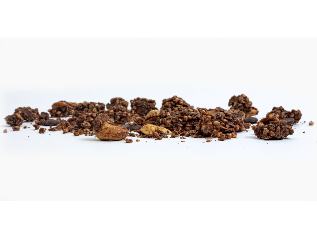 Choco granola obsahuje jednoduché složení těch nejvybranějších surovin v BIO kvalitě, které dodávají skvělou a nezaměnitelnou plnou chuť a vůni, bez použití syntetických aromat a nekvalitních tuků. Navíc je tato dokonalá kombinace chutí bezlepková! Veškeré použité ingredience jsou rostlinného původu, tudíž je také vhodná i pro vegany.