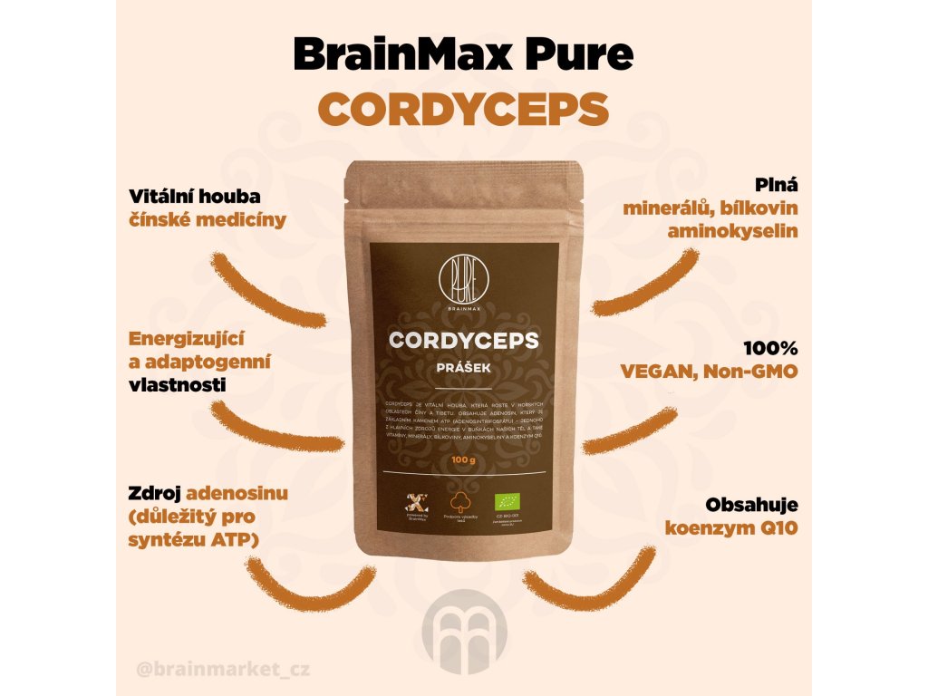 BrainMax Pure Cordyceps prášek BIO, 100g
