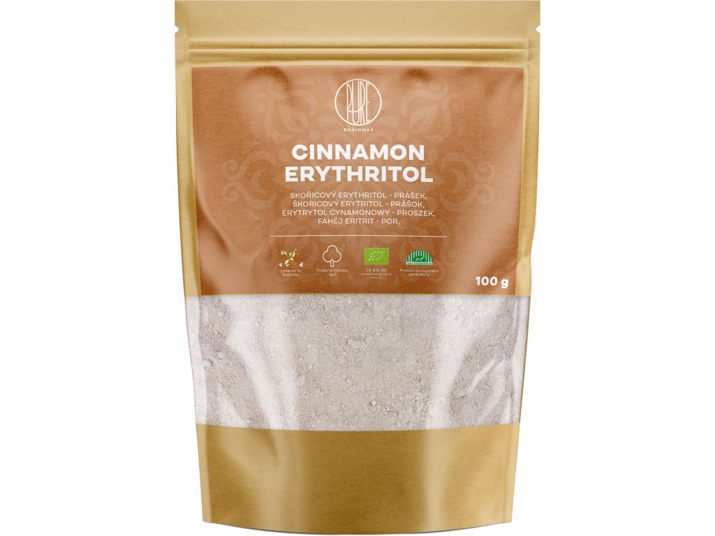 BrainMax Pure Erythritol Skořice moučka BIO, 500 g