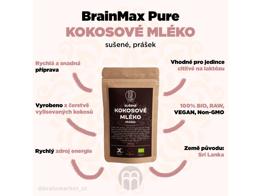 Přednosti BrainMax Pure kokosového mléka v prášku: