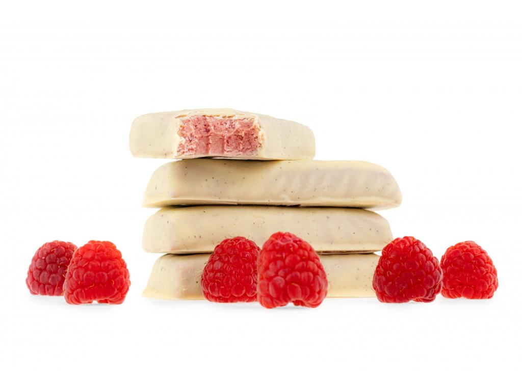 Tyčinku jsme obalili v BIO bílé čokoládě, která v kombinaci s malinami a citronem vytváří opravdovou, svěží delikatesu.
