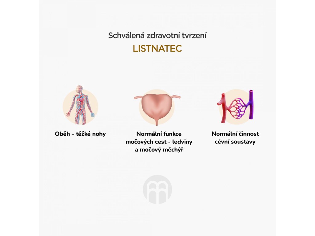 Hlavním přínosem Listnatce je jeho schopnost podpořit krevní oběh. Používá se jako prostředek při stagnujícím oběhu. V bylinné medicíně se používá stovky a pravděpodobně tisíce let. Sloučeniny v listnatci podporují průtok krve zpět do srdce. Kromě toho podporuje zdraví ledvin a celé močové soustavy.
