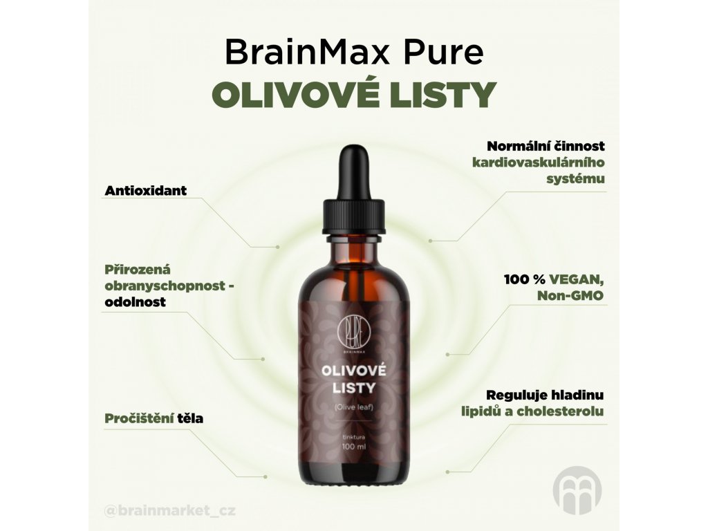 BrainMax Pure Olivové listy tinktura 1:3, 100 ml