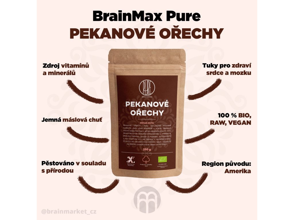 BrainMax Pure Pekanové ořechy BIO, 250 g