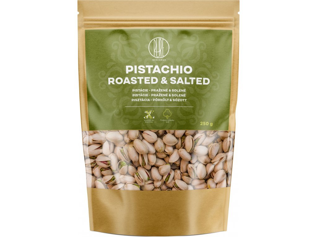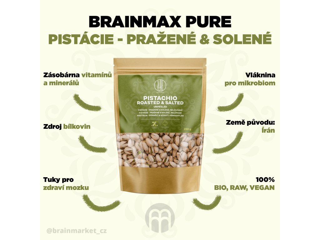 BrainMax Pure Pistácie, pražené & solené, neloupané, 250g