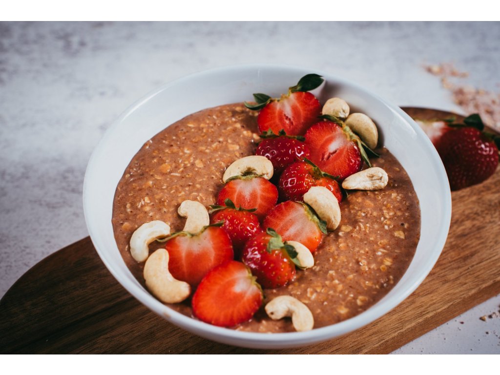 Obsahuje 25 % BIO syrovátkového proteinu, lyofilizované jahody a bezlepkové ovesné vločky – ideální pro každodenní podporu vitality a svalové regenerace.