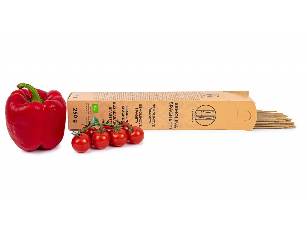 BrainMax Pure Špagety jsou vyrobeny z tvrdozrnné pšenice, tzv. semoliny, díky kterým mají těstoviny lepší pružnost, nelepí se, nerozváří a obsahují větší množství bílkovin (10,5 g na 100g) a udržují si svou přirozeně hnědou barvu. Těstoviny jsou v certifikované BIO kvalitě, to znamená, že podléhají přísným pravidlům ekologického zemědělství, které zaručují, že při pěstování surovin nebyly použity žádné škodlivé látky.