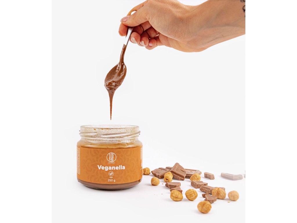 Lískooříškový krém (55%) a mléčná veganská čokoláda (30%) jejiž mléčná chuť je založena na superpotravině Chufě tvoří základ jednoduchého receptu na skvělou chuť. Veganella je pochoutkou vhodnou do všech sladkých jídel od lívanců po palačinky, ale i do vašich zdravých snídaní s granolou či vločkami.