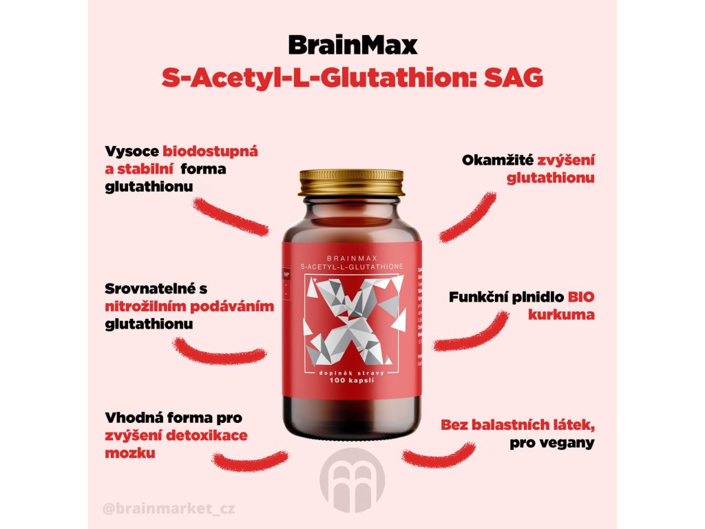 BrainMax S-Acetyl-L-Glutathione, SAG, 100 mg, 100 rostlinných kapslí