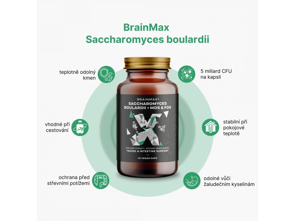 Probiotika jsou látky, které napomáhají zdravému fungování střevního mikrobiomu. Saccharomyces Boulardii je probiotický kmen založený na kvasinkách, který je unikátní vyšší teplotní stabilitou a lepší odolností proti kyselinám v žaludku. Saccharomyces Boulardii je jediný známý kvasinkový druh s probiotickými vlastnostmi, který se přirozeně vyvíjí při teplotě 37 °C, což odpovídá normální teplotě lidského těla. BrainMax Saccharomyces boulardii podpoří trávení a jsou vhodná k použití v tropických oblastech nebo v místech s odlišným klimatem či při průjmech.